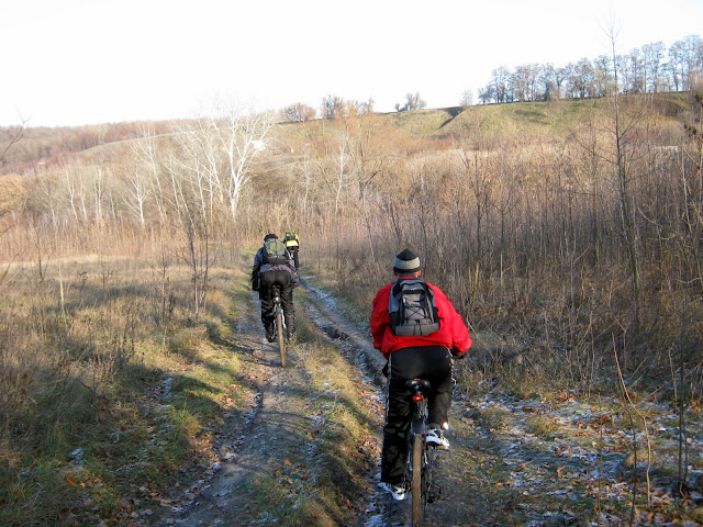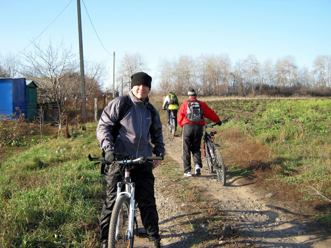 Допив наши запасы чая на вершине склона мы двинулись в сторону Гавронцев. Дороги от Сорочиного Яра нет, поэтому пришлось ехать прямо по полю с озимыми (хотя раньше там дорога была, но почему то владельцы фермы ее распахали). Прямо возле фермы мы ушли в крутой овраг по которому спустились в село, ну а далее по асфальту вдоль Ворсклы с перерывом на чаек и пепси в районе Воронина мы вернулись домой!