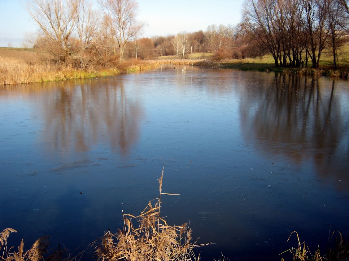 На другом берегу водоема было решено устроить первый привал и выпить чаю из термосов! Пейзажи вокруг открывались прекрасные и это в 15 км от Полтавы. Летом здесь должно быть вообще чудесно.